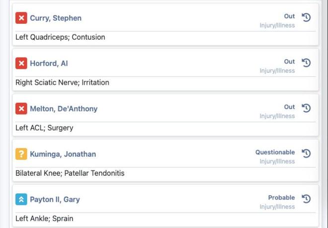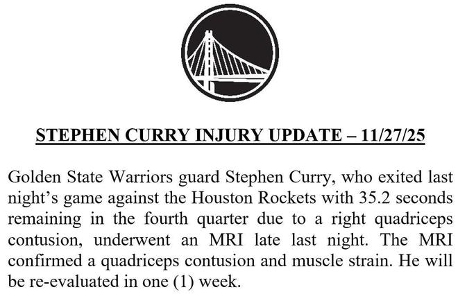 在这份伤病报告中,勇士队更正了库里的伤病情况:此前勇士官方报道的是库里在对阵火箭的比赛中右大腿股四头肌挫伤,但在今日的报告中,库里受伤的腿改为了左腿。